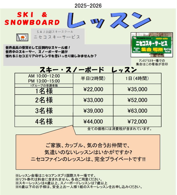 スキー・スノーボードレッスンは